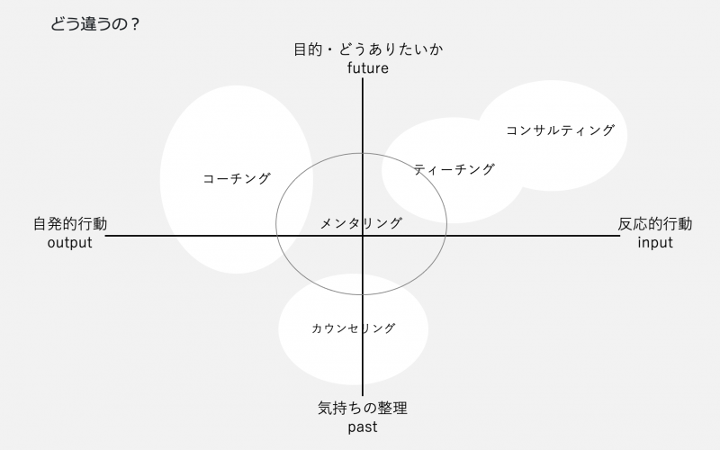 そういう意味では、スポーツにおけるコーチはスキルを教えることも含まれますので、ここでも「コーチ」とは少し意味合いが異なります。